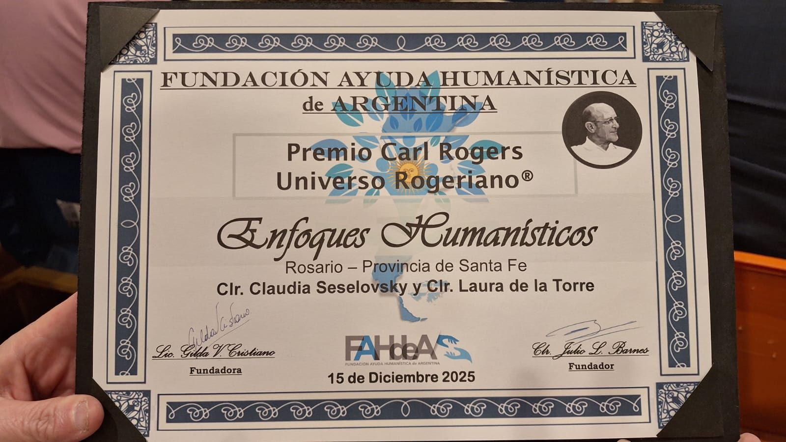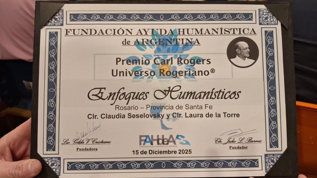 Este lunes 15 de diciembre participamos de la entrega de los Premios Carl Rogers, otorgados por la Fundación FAHdeA. Para nosotras, es una oportunidad de mirar el camino recorrido y agradecer.